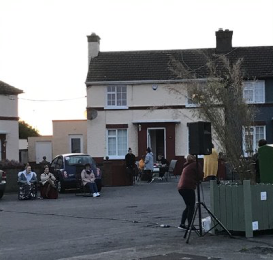 In Dublin city, communal bingo has been a very popular activity, with videos of residents playing the game spreading on social media and encouraging others to follow suit. Meanwhile residential streets have been the scene of many different kinds of organised, socially distanced community gatherings. With all gyms closed, people have gathered on their streets to exercise or dance together; communities have organised children’s art exhibitions outdoors and art competitions staged in windows. Again, social media tools like WhatsApp seem vital in communicating and enabling social activities. In Cork, neighbours in a city terrace have taken to watching outdoor movies in their front gardens, with the images projected onto the gable end of a house and the sound broadcast to their radios. All of these gatherings are localised in nature. They leverage the resilience of residential clusters and aim to build solidarity and encourage communities to believe that withstanding the pandemic is best approached collectively. While there are many examples of creative responses from residents and neighbourhoods the local state has also responded institutionally, impacting on the use of public space. For example, in Glasgow, the local authority has started to explore how streets, in particular, could be conceived differently during the pandemic and what this might mean for how they are used post-COVID. Initially, this has led to the creation of more space for exercise and outdoor activity with some streets now closed to motorised vehicles and the development of new cycle lanes and pedestrian areas. Though these are temporary responses to the crisis of COVID-19, the learning from experiments will no doubt inform different uses of these urban assets in the future (e.g. socially distanced street festivals will need more space).