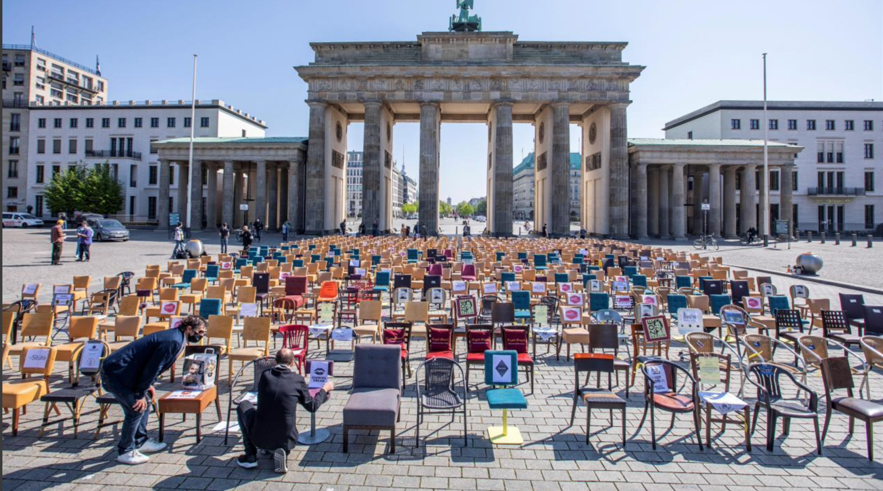 During the COVID-19 lockdown we have found evidence of other types of transformation consisting of the occupation of public space and collective events by objects of representation. Faced with the prospect of holding sports events behind closed doors, experiences have arisen that fill the stadiums with mannequins or robots that represent the public and even pay admission. In Japan, a graduation ceremony was held thanks to the participation of remote-controlled robots from home by the students. In Dublin also, universities are holding virtual graduation services. Private living rooms are being transformed into liminal zones where graduates become graduates in the physical presence only of their immediate family. Hoteliers in Berlin have spoken out against the closure policy the government has imposed on them by sending their seats to concentrate in front of the Brandenburg Gate.